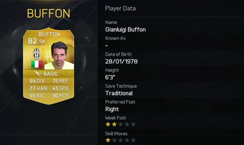 The 36 year old Italian stopper comes in at number 17 with a rating of 82. He is still recognised as one of the best goalkeepers in the world and would be looking to do well in the Champions League this season with Juventus.