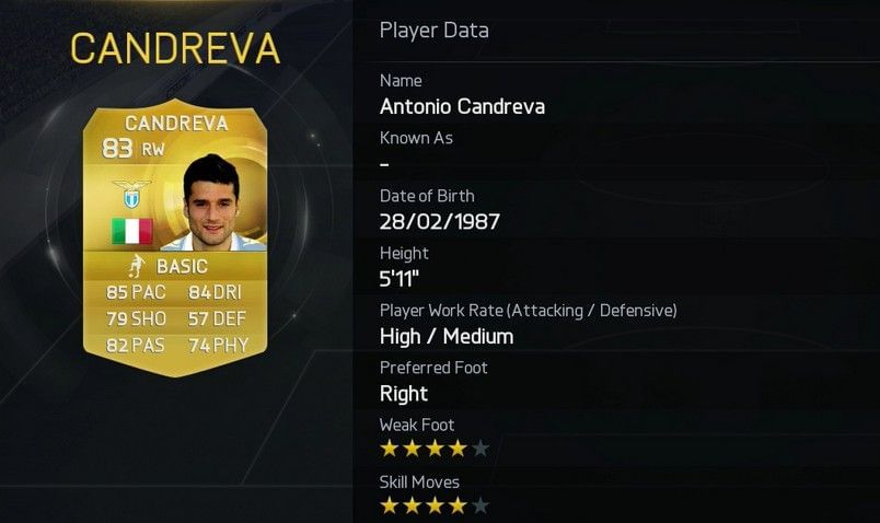 Candreva was part of the Italian team that got knocked out in the first round in Brazil recently. He is currently at Lazio, and is known to be a very pacy winger. Buy him in career mode since he is just 27 years old and is rated 83 already.
