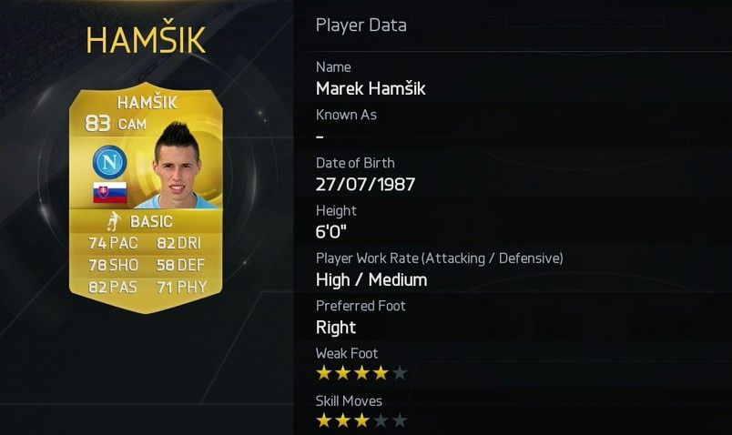 The Slovakian Captain has been at the heart of Napoli’s midfield for quite sometime now as a very reliable playmaker. Last season was the first time where he couldn’t touch double figures in his goal tally since moving to Napoli. He is rated 83 in FIFA 15.