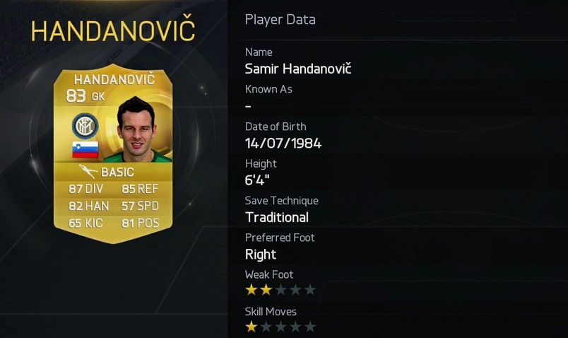 After a long career with Udinese, Handanovic has moved to Inter and is now one of the most reliable goalkeepers in Seria A. With a rating of 83, he is the joint highest rated goalkeeper in the league.