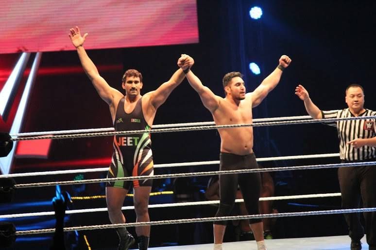 Both the Indian grapplers teamed up to take on Chad Gable and Jason Jordon, which marked the first all Indian tag team in WWE history. The Indians won the match via submission amid yes chants that vibrated all around the arena.