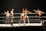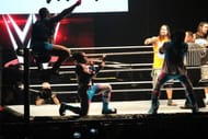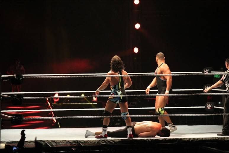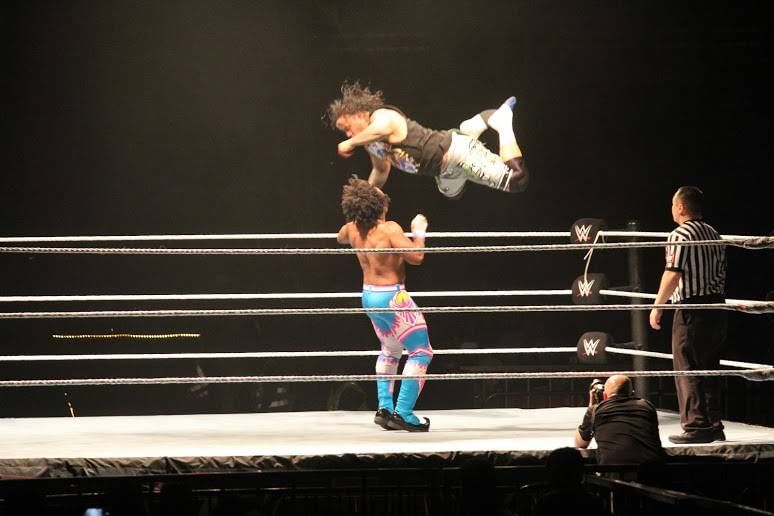 Xavier Woods was Superkicked in succession by both the Usos and Ziggler that laid him out completely. The Usos and Ziggler went on to pick up the win to the delight of the fans.