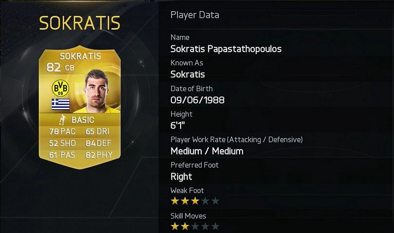 Up next, in the 19th spot, we have centreback Sokratis. An intelligent defender, he combines well with Hummels to diffuse any threat on goal. Tall and strong, he repels attacks with ease and takes down attackers with timely tackles and interceptions.