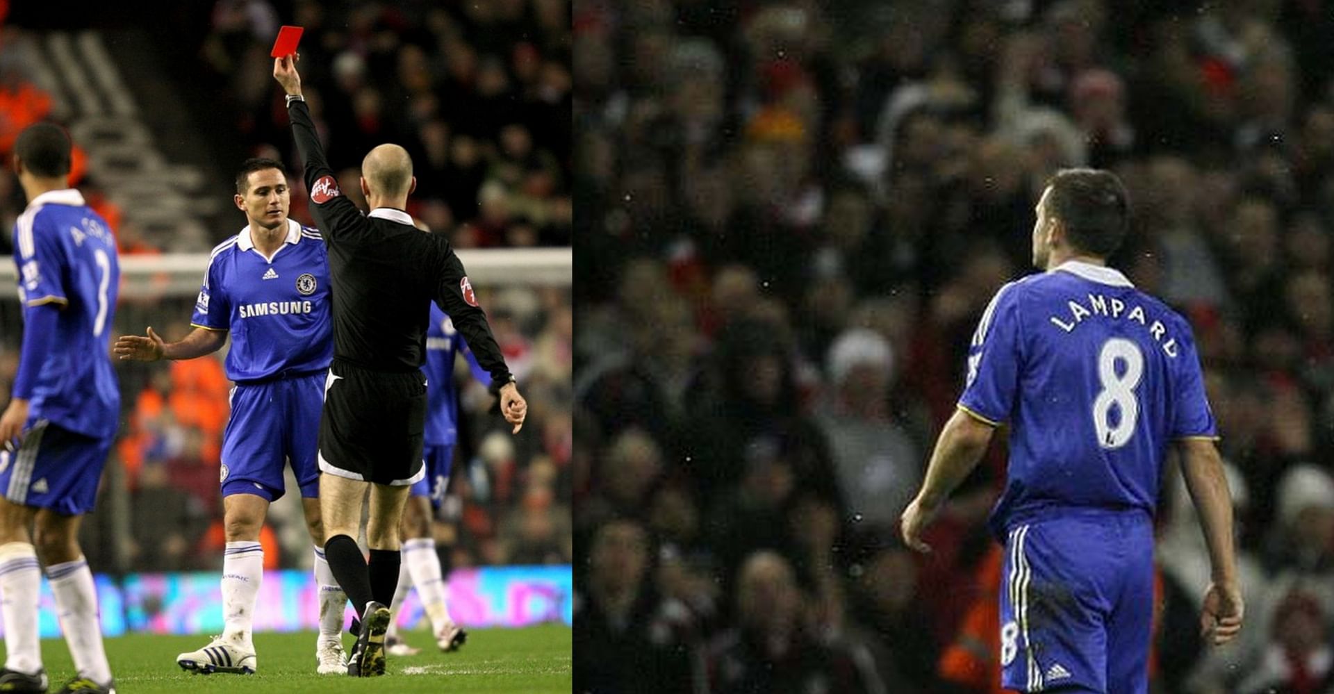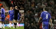 On the hour mark, with the score still level at 0-0, referee Mike Riley dismissed Frank Lampard after a tackle on Xabi Alonso. Replays of the incident suggested that the midfielder had won the ball first and it was Alonso who made contact with the Chelsea player's shin.