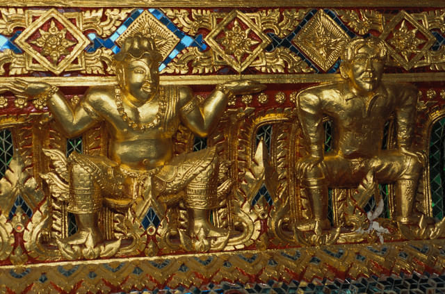 He also has a foot-tall gold-covered bronze statue at the Pariwas temple in Bangkok, Thailand, which is placed next to the other statues and the main Buddha statue.