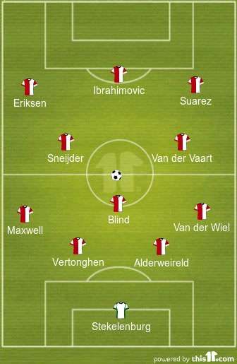 Danish midfielder Christian Eriksen takes up the left forward slot having impressed ever since his U-17 days. He spent five seasons with the Ajax senior team and was part of the squad that won three consecutive league titles between 2011 and 2013.
