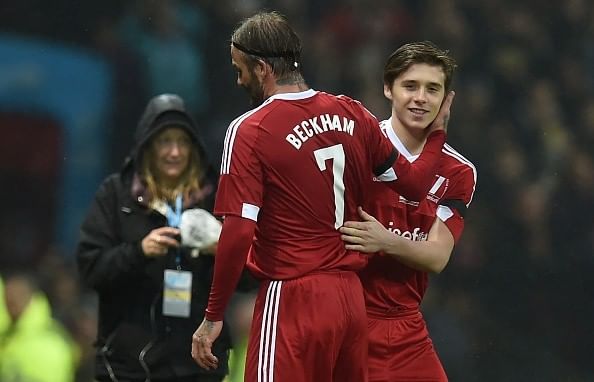 Brooklyn Beckham came on as a substitute to replace father David Beckham in the charity match. Passing on the torch at Old Trafford? We’re not so sure since young Brooklyn is an Arsenal fan and even played for the Arsenal U-16 team and are regular visitors to the north London side’s games at the Emirates Stadium.