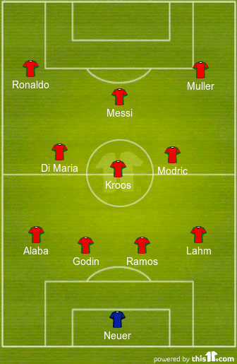 With World Cup winning manager Joachim Loew at the helm, this is how our 2014 Best XI would turn out, in a 4-3-3 formation with Messi as the designated false nine.