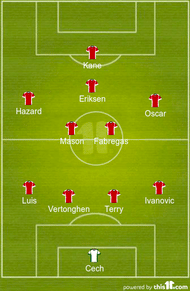 Substitute: Thibaut Courtois, Kyle Walker, Kurt Zouma, Mousa Dembele, Nabil Bentaleb, Deigo Costa and Nacer Chadli.