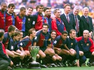 The Dutchman’s impact though was instant. Ronaldo had left after just one record-breaking season, but international teammate Rivaldo was brought in to replace him. The Brazilian was imperious as Barca strolled to the La Liga title by nine points. Mallorca were defeated in the Cup, giving Van Gaal a double in his first season.