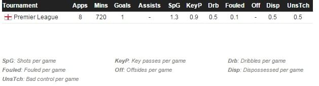 He has nevertheless been the pick of the signings in the Premier League this season and has recently returned back from injury with his first goal in the FA cup.