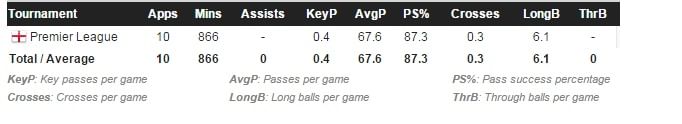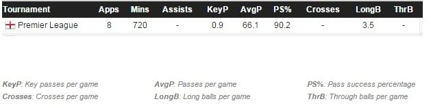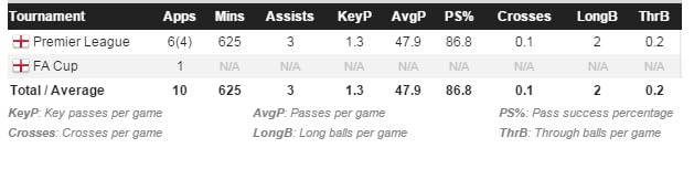 The Dutchman took no time in adapting to the English game and has shown great composure on the ball with a pass success percentage of over 90. Before he got injured, everything came through him as he played the role of a classic box-to-box midfielder by acting as a foil for the back four and distributing the ball forward at the same time. Possess a good sense of positioning which helps him make crucial interceptions and tackles.