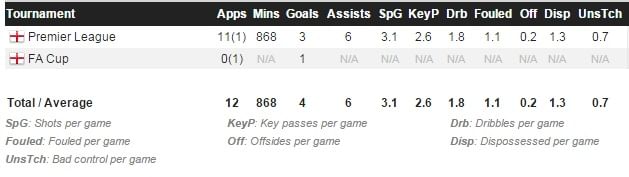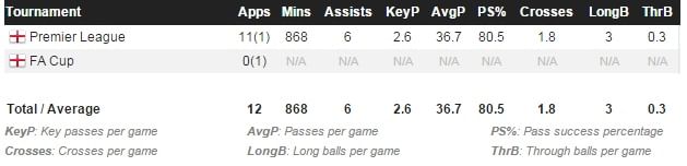With six assists and atleast three key passes on an average per game, it is quite clear that Di Maria has been the most creative player for United this season. His ability to go past defenders and provide early crosses into the box has wreaked havoc in the opposition defense on many occasions. Moreover, the former Real Madrid star possesses a very high degree of work rate and helps his teammates quite often by regularly tracking back and then initiating blistering counter-attacks.