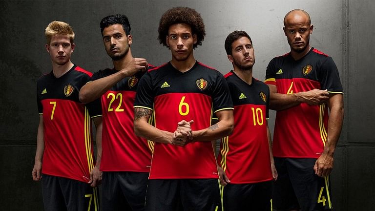 The Belgium Euro 2016 kits is inspired by the nation’s tricolour – red, black and yellow. The shirt is dominated by red and it is complimented with black colour block on the chest. The fluorescent yellow details also give it a fresh look.