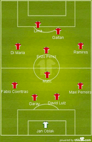 Nico Gaitan (who is likely to move to Monaco soon) plays as a second striker behind another current teammate in the Brazilian Lima who scored 21 goals last season.Bench: Lazar Markovic(£20 million to Liverpool), Javi Garcia(£16 million to Manchester City), Axel Witsel(£32.5 million to Zenit St.Petersburg), Rodrigo (on loan to Valencia)