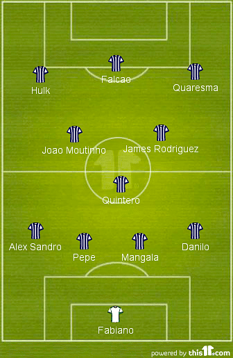 Radamel Falcao (£32m to Atletico Madrid) plays as the central forward, also creating room for runs down both wings by Hulk (£48 million to Zenit St. Petersburg, most expensive transfer from Portugal) and Ricardo Quaresma (£15 million to Inter Milan).