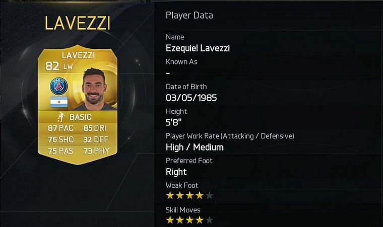 The fabulous winger has been in fine form this season and recently scored a fantastic goal against Rennes which is easily one of the goals of the season. Lavezzi, who is rated 82 on FIFA 15, is an integral part of PSG and has supplied the clubs deadly duo of Ibrahimovic and Cavani with sublime chances on many an occasion.