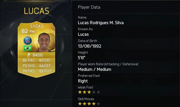 Lucas’ magnificent pace enables him to run rings around the most organized defences as well as his excellent dribbling abilities which make dispossessing him a near impossible task. Many FIFA 15 players have begun to take notice of Lucas’ heroics and have unsurprisingly added the 82 rated player into their Ultimate Team.