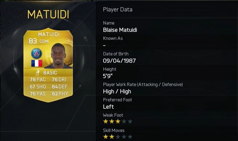 Every top team needs to have a top class holding midfielder in their engine room and Matuidi is one of the best there is. The Frenchman, who is rated 83 on FIFA 15, has the strength of an Ox and is an expert at breaking up the oppositions play.