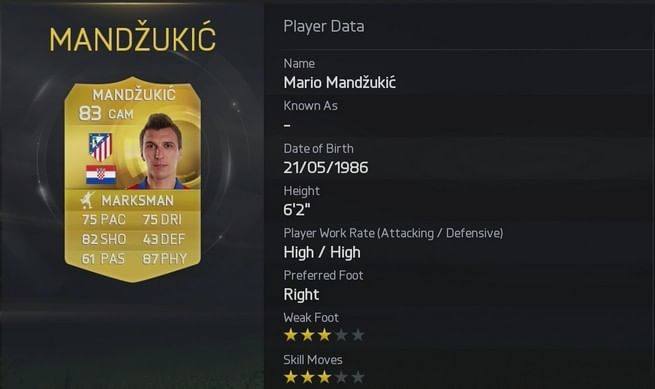 Mario Mandzukic has had a decent season at new club Atletico Madrid where he has scored 12 goals in all competitions. In FIFA 15 Ultimate Team, the Croatian has scored 4.9 million goals altogether and ranks 19th overall.