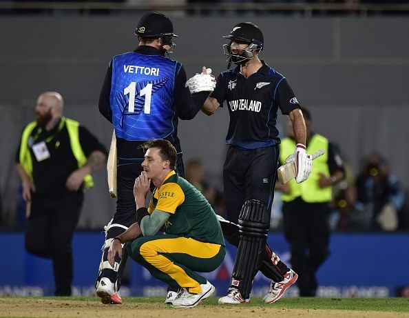 Chasing a D/L revised target of 298 in 43 overs, New Zealand pulled off an incredible victory in their World Cup semi-final clash against South Africa at Eden Park, Auckland, today. Grant Elliott produced a Man-of-the-Match performance with an unbeaten 84 off 73. Brendon McCullum and Corey Anderson scored half-centuries too.Earlier in the day, Trent Boult picked up 2 early wickets to jolt the Proteas top order, but Faf du Plessis and Rilee Rossouw got their team through the difficult passage – setting it up for AB de Villiers and David Miller to provide the finishing touch. Here are the numbers that matter from the game: