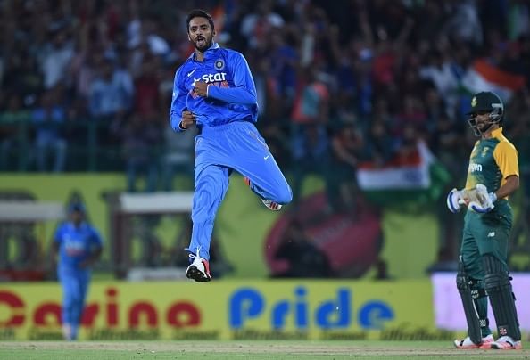 Sreenath Aravind, making his debut for India in this match, jumps in delight after dismissing South African skipper Faf du Plessis. It was the Karnataka pacer’s only moment to cherish in an otherwise forgettable match as he gave away 44 runs in 3.4 overs.