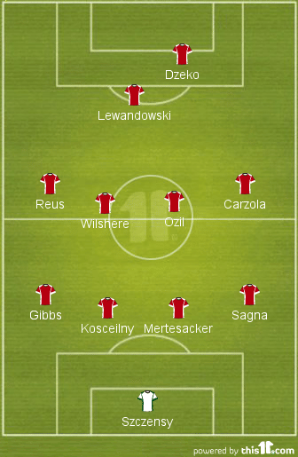 Arsenal have some high quality midfielders, in the form of Ozil, Carzola, Podolski and Wilshere. The four of them are enough for you to execute a 4-4-2 diamond formation whithout playing anyone out of position, but you can’t overwork them. Ramsey and Flamini are very good central mid fielders and can always be used to replace Jack Wilshere.