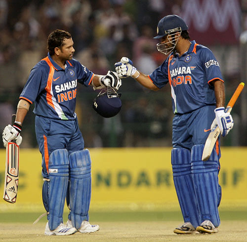 Tendulkar showed his first signs of real intent in the 18th over of the innings when he effortlessly lifted part-timer Paul Collingwood’s delivery into the stands.Tendulkar hit Collingwood for another six a couple of overs later, and brought up yet another ODI fifty, off just 65 balls. India were scoring at a healthy rate of about 5.70 runs/over and reached the team’s 150-run mark in the 27th over when Tendulkar slog swept off-spinner Greame Swann for two consecutive sixes over deep mid-wicket.