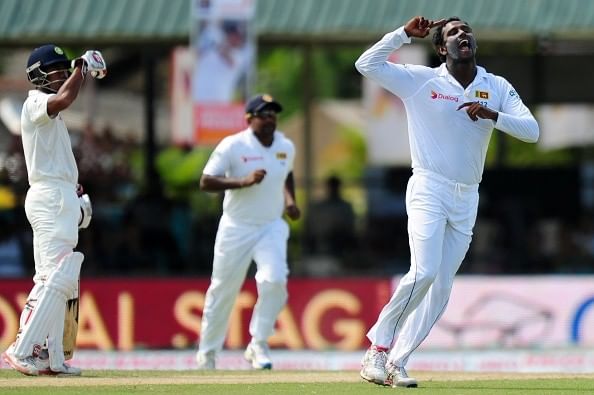 Second day’s first wicket was taken by captain Angelo Mathews when he dismissed Indian cricketer Ravichandran Ashwin of a loose delivery, asking Ashwin to drive. This is how he celebrated with his teammates.