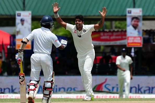 Umesh Yadav took the first Sri Lankan innings’ wicket as he successfully trapped Dimuth Karunaratne in his very first over.