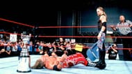 Before that match could happen, though, Hennig was supposedly attacked backstage by the NWO and came to the ring in sling. That turned out to be a ruse, as Hennig viciously attacked Flair and joined forces with the NWO.