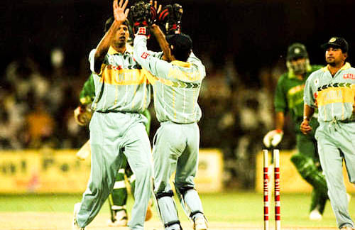 Saeed Anwar’s wicket: Saeed Anwar had started the procession on a positive note and was looking very dangerous. Anwar let a Venkatesh Prasad fly high and straight into the safe hands of Azharuddin. The bowler’s second spell then took care of the middle order as he and fellow paceman Javagal Srinath finished with 3 wickets each.