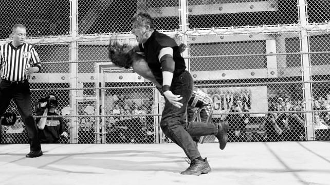 Michaels was knocked off the cell and was left dangling from the top with Taker stomping on his fingers to make him fall. Michaels finally gave up and crashed through the announce table which turned out to be a memorable bump.