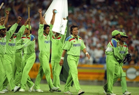 England and Pakistan squared off for the summit clash of the 1992 World Cup in front of a record crowd at the MCG. In a game that seesawed for a large part, Pakistan, led by their inspirational captain Imran Khan who was playing in his last game, pipped England by 22 runs to lift the World Cup.