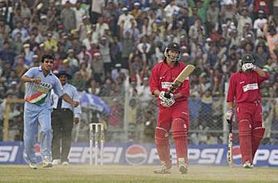 However Stuart Carlisle (109) and Sean Ervine (100) added 202 runs for the fourth wicket in just 34 overs to make for a tantalising chase. With 33 needed from the last 24 balls, Zimbabwe lost the plot. They could only manage 277 for six in their 50 overs, falling short by three runs, with Ajit Agarkar finishing with excellent figures of 3-39.