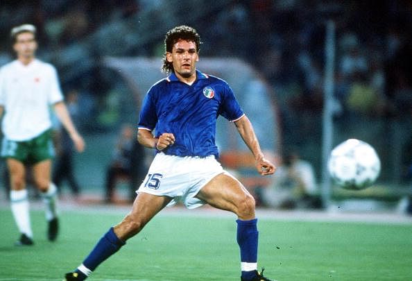The divine ponytail scored a brilliant solo goal for Italy against Czechoslovakia in the 1990 World Cup. Baggio came in from the left and goes into a one on one with the keeper after which he fired straight past him.