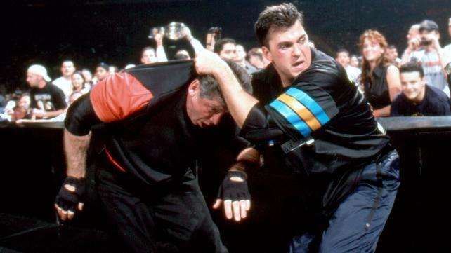 Foley avenged the two chair shots he got at the hands of Vince by blindsiding the boss. Shane quickly capitalized on this with a Coast-to-Coast for the win.