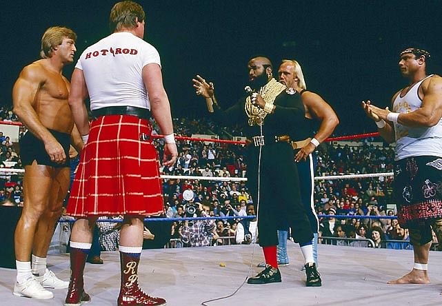 So, this Mania featured a match between Hogan/Mr. T and Orndoff/Roddy Piper in which the former managed to beat the latter convincingly.