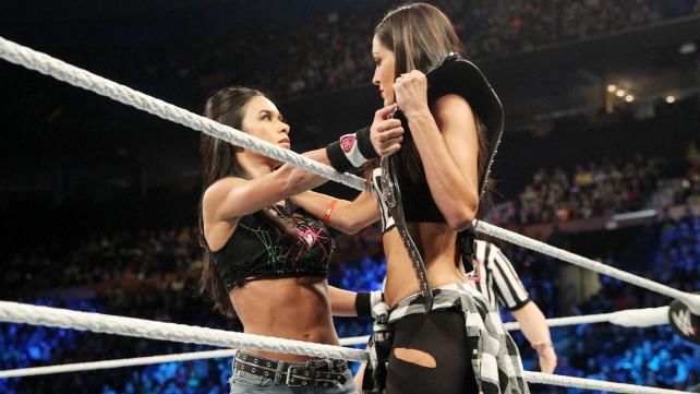 She came in, she made out with Brie Bella and she lost the match to the other Bella just like that. Now, Nikki ain’t one of those brightest apples in the basket. Her wrestling skills are far away from that of AJ’s and the same goes for her mic skills.