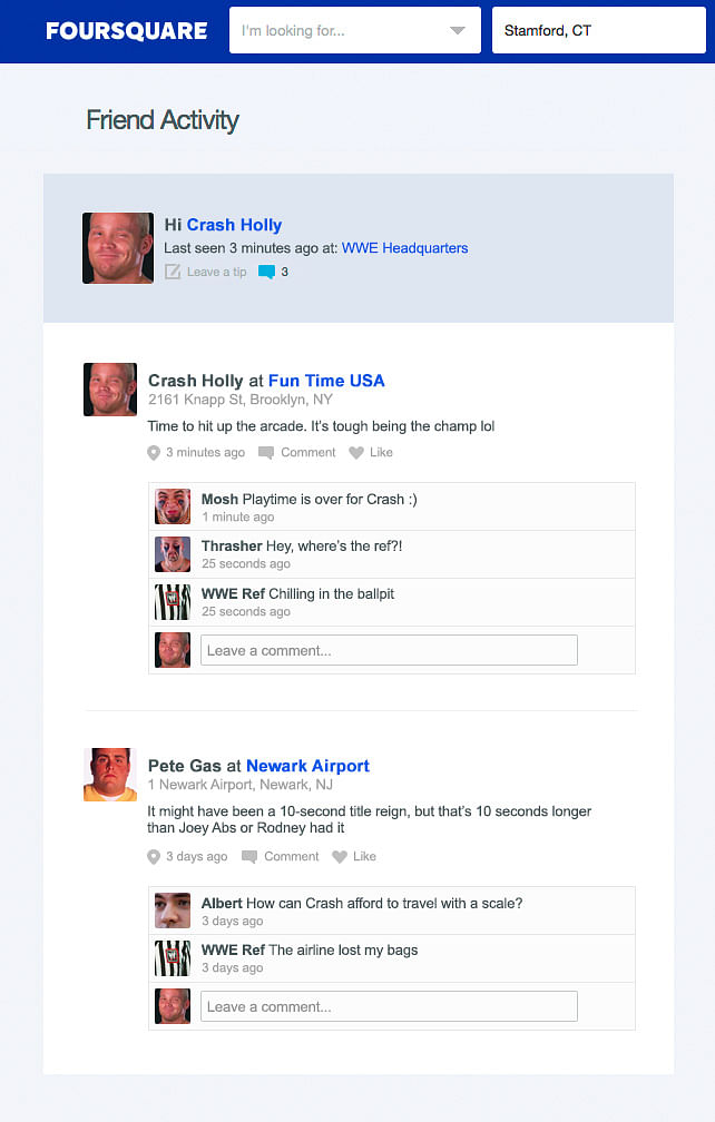 One of the best segments during his reign was one that happened at the airport. if Crash and all the people who jumped on him for the title were updating their status at the same time, the result would’ve looked something like this.