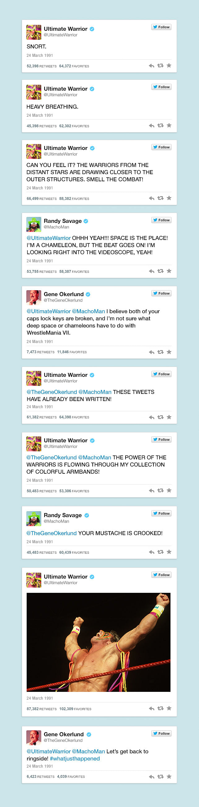 And to make sure that the two men don’t lose their temper and break up the Twitter servers, Gene Okerlund could also be in the mix to play peace maker.