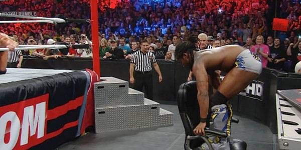 In 2014, Kofi came into the Royal Rumble match in the No. 8 and lasted just shy of 13 minutes. At one point, Kingston appeared to be in trouble with a much stronger Jack Swagger depositing him over the top rope.