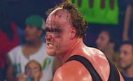 If he lost, he would have to unmask. Kane lost the match after Evolution helped Triple H get the win. However, he did not unmask here. Rather, he did so at that very WWE RAW episode. He would unmask showing a semi-burnt face and half of his hair.