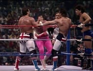 Even though Haku was and is one of the most feared superstars of all time in real life, Hercules got the best of him with a suplex after a match that allowed both big men to show off some agility and athleticism in addition to their brutal attack styles within and outside the ropes.
