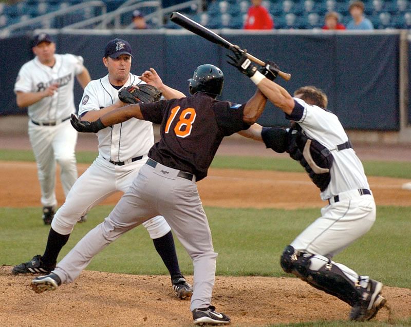 Offerman ran upto to the pitcher’s mound and angrily assaulted Beech twice with his bat, also injuring Bridgeport catcher John Nathans in the process.