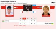 Lazareva dominated her Indian opponent in both rounds in which they competed, tallying scores of 8-0 and 1-0.