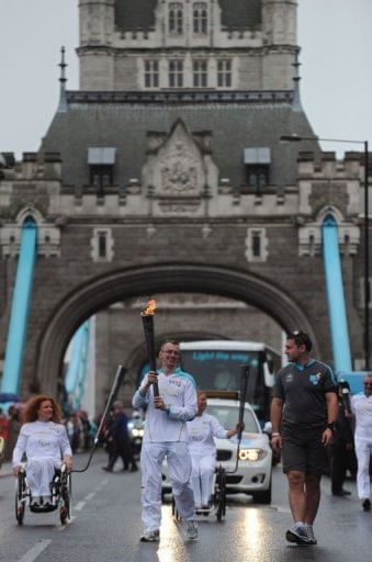 The flame — created from four others kindled on the highest peaks of England, Scotland, Wales and Northern Ireland — was brought to the venue in a 148-kilometre (92-mile) overnight relay from Stoke Mandeville to London.