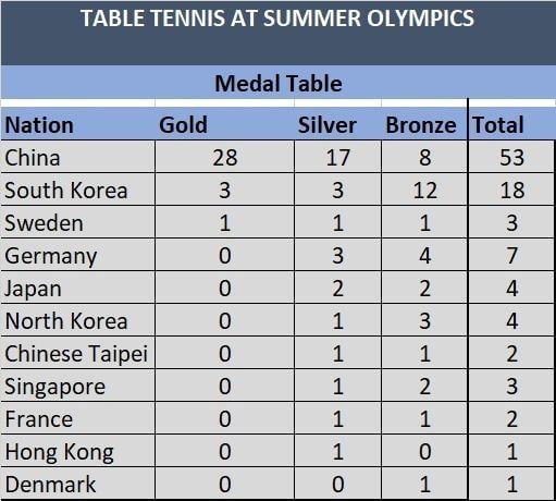 Chinese players have dominated the sport since its inception at the 1988 Seoul Olympics, winning 28 out of the 32 gold medals on offer up until Rio 2016.