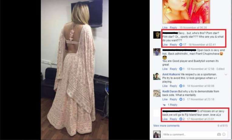 One of the comments on a picture of Mirza playing a shot read: “don’t strike me pls! allow me first to touch your bo**s.”