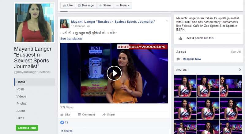 There exist numerous Facebook pages that go by names like ‘Saanniaa Mirzza Shaggers’, ‘Mayanti Langer “Bustiest n Sexiest Sports Journalist”’, etc. These pages specialize in providing their followers with pictures of the respective personalities, which they somehow always manage to make provocative.
